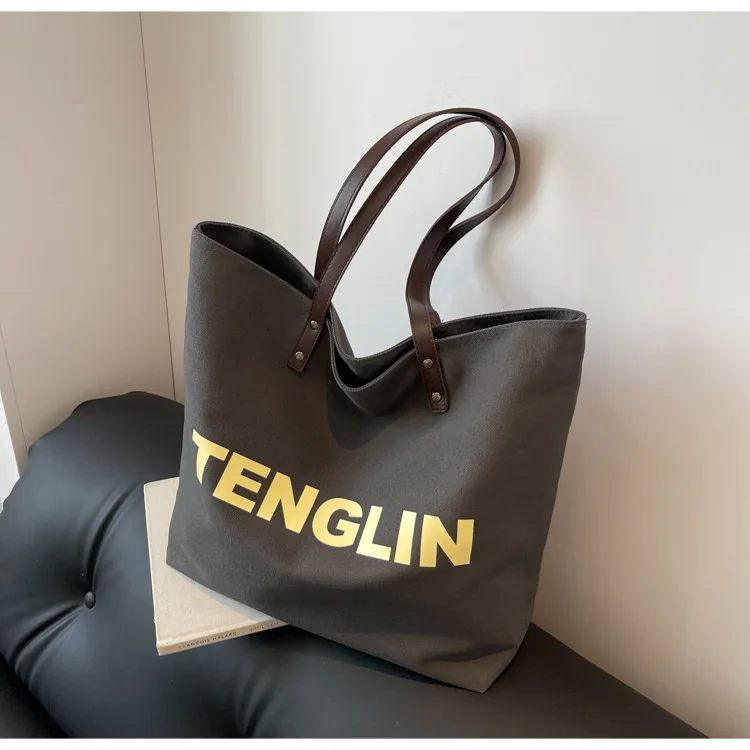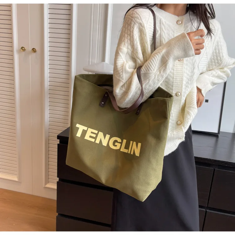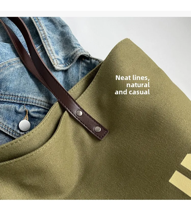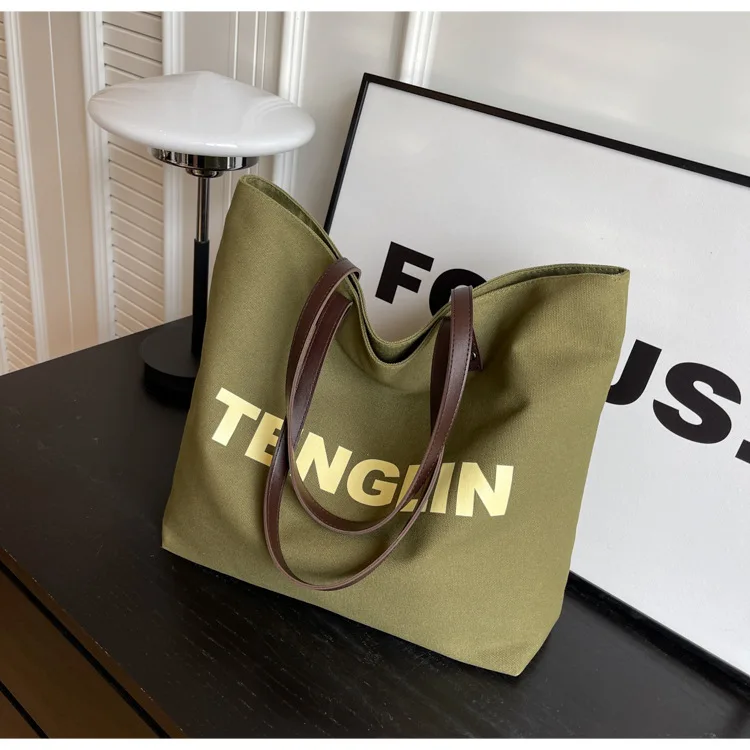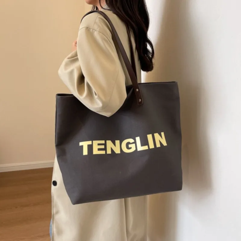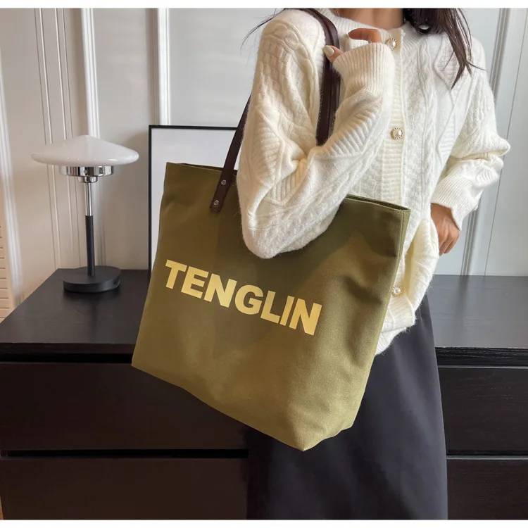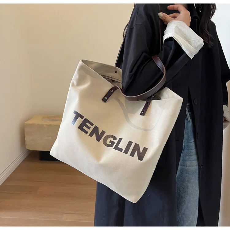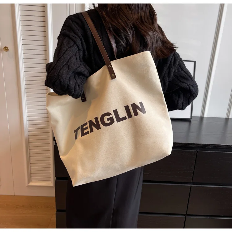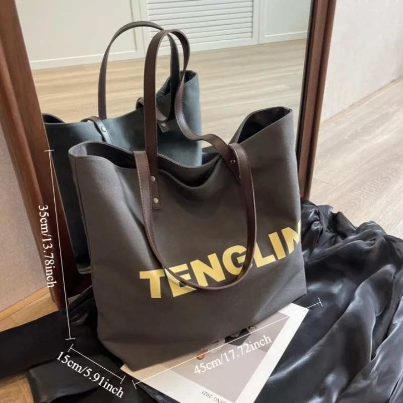 Canvas Tote Bag Fashionable Simple Versatile Handbag for Women Commuting Shoulder Bag Work