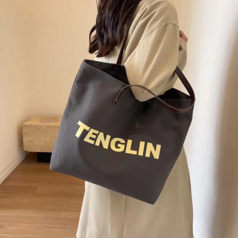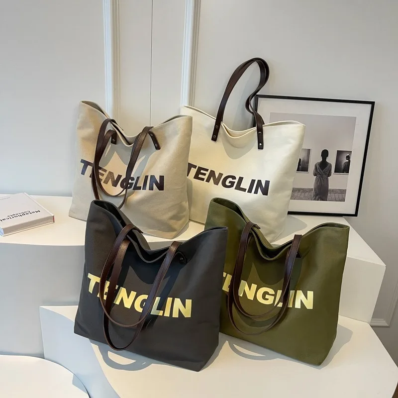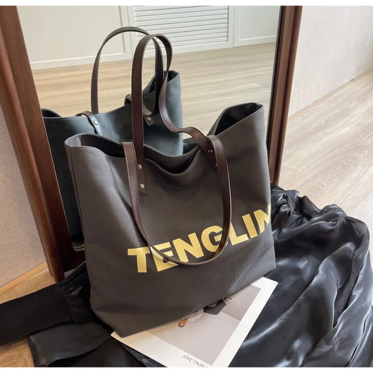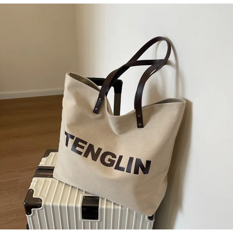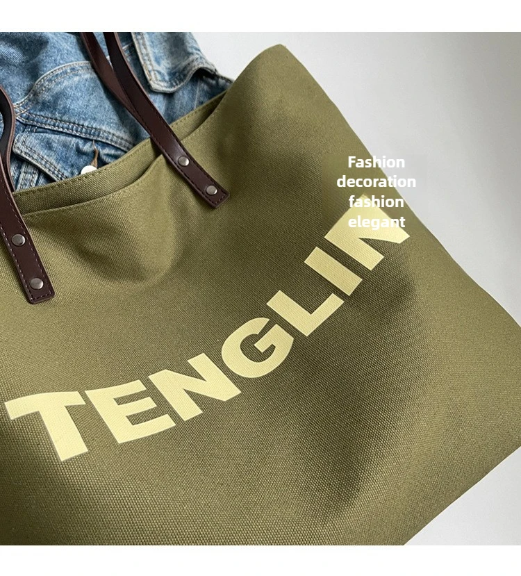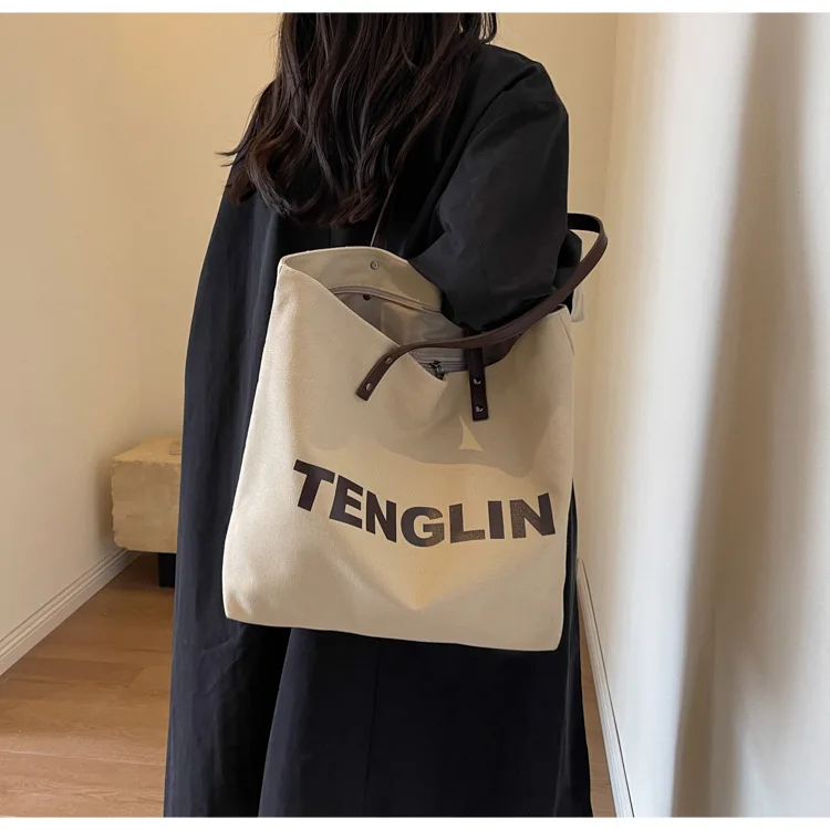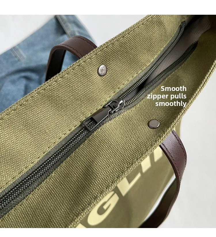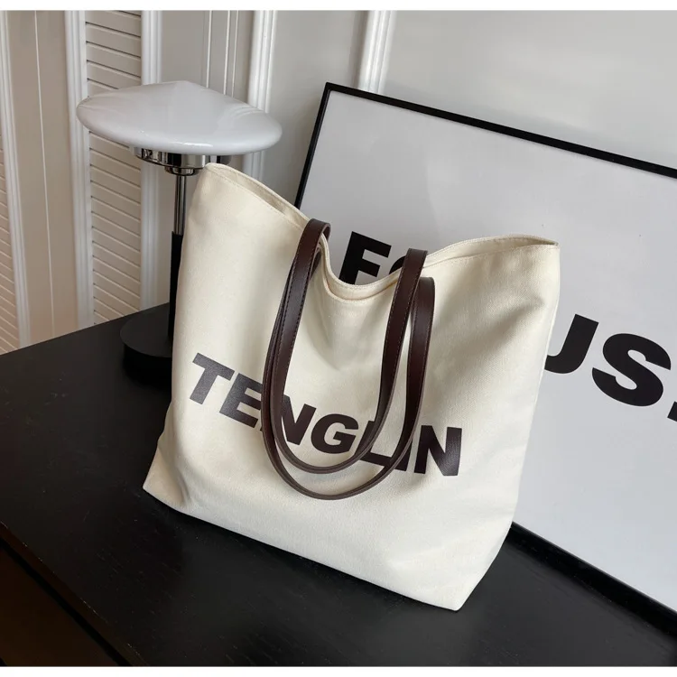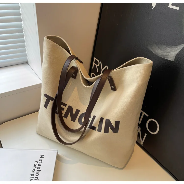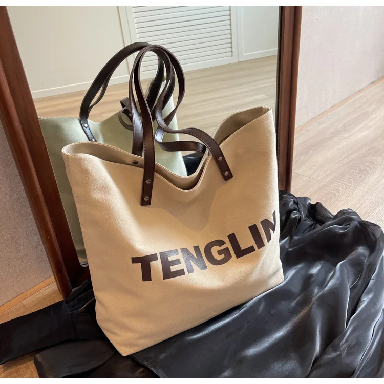 Canvas Tote Bag Fashionable Simple Versatile Handbag for Women Commuting Shoulder Bag Work