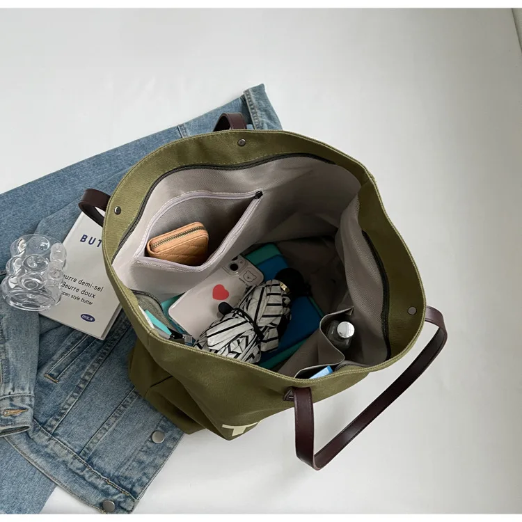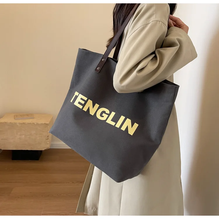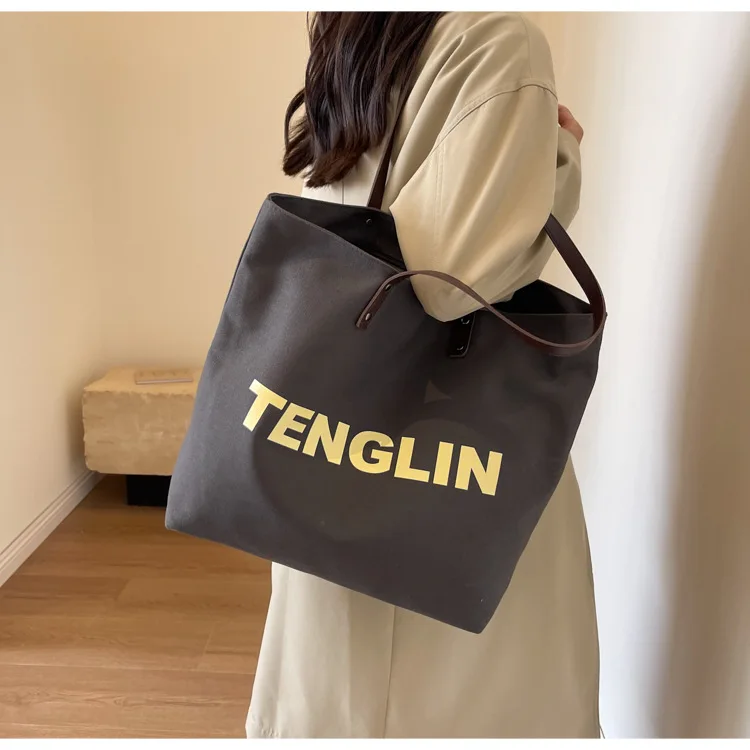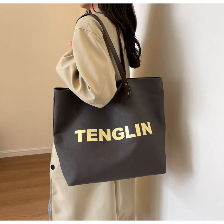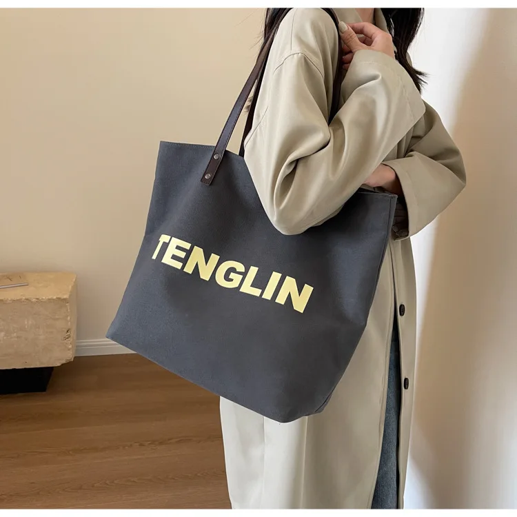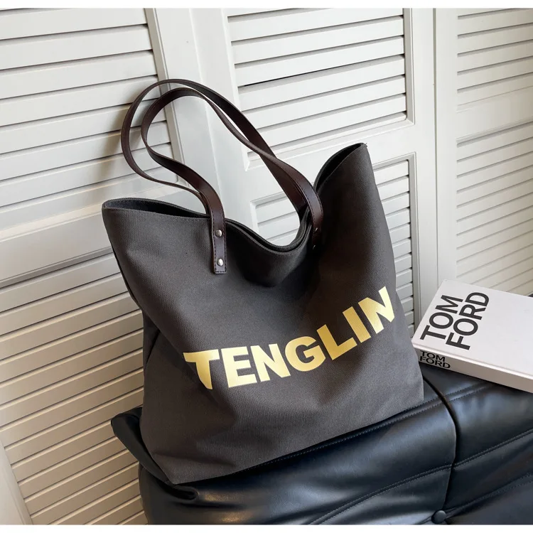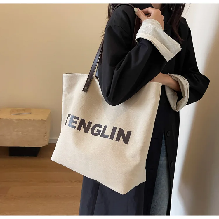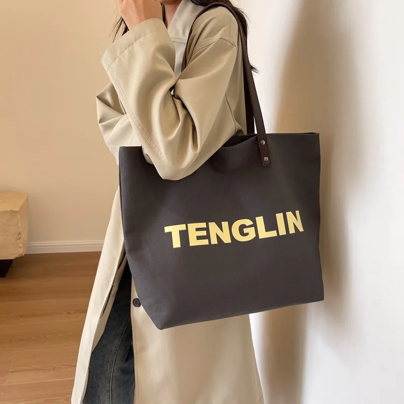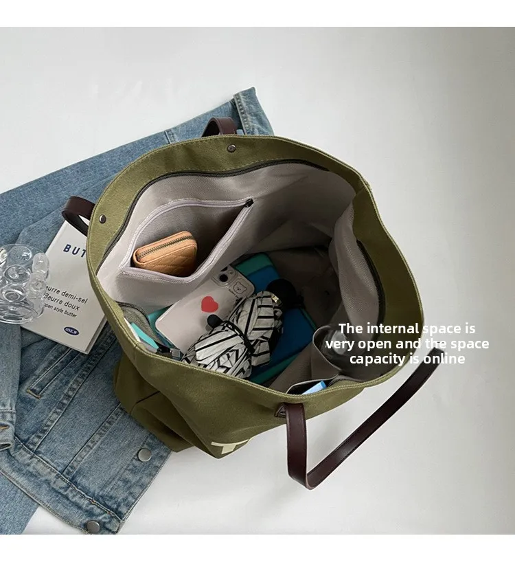 Canvas Tote Bag Fashionable Simple Versatile Handbag for Women Commuting Shoulder Bag Work