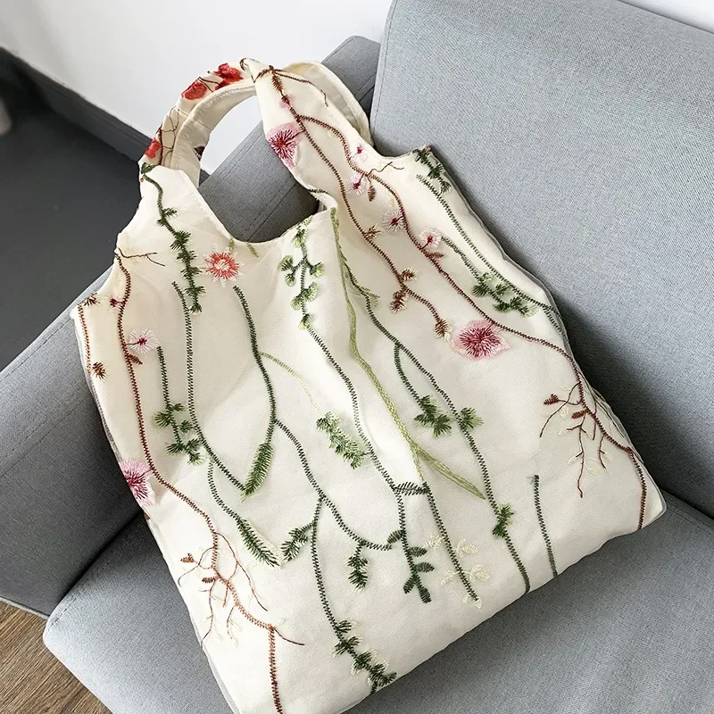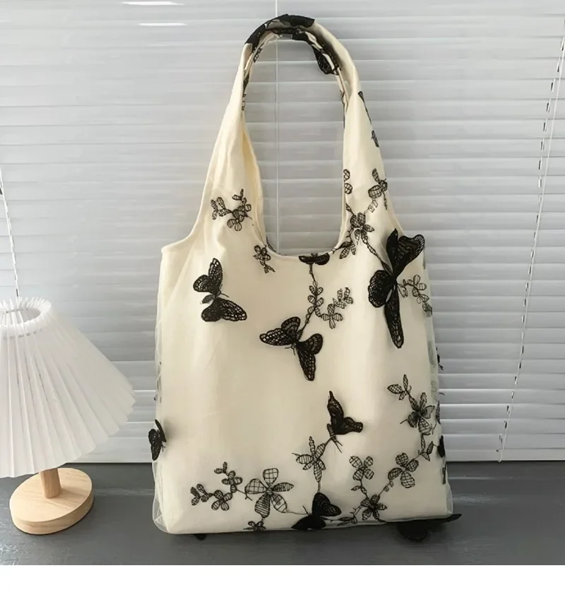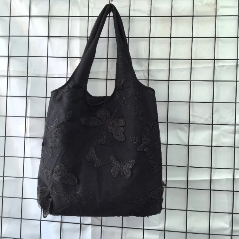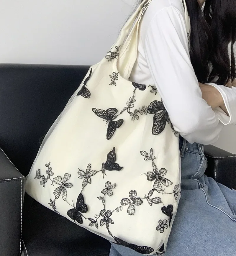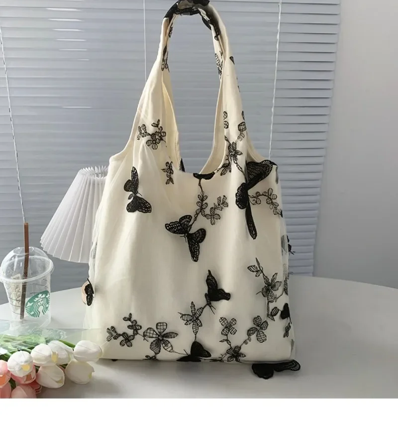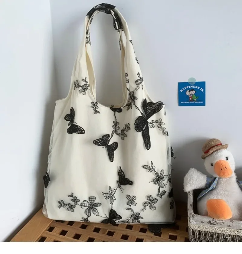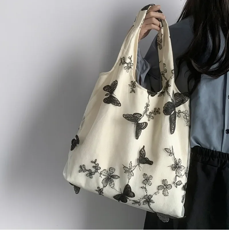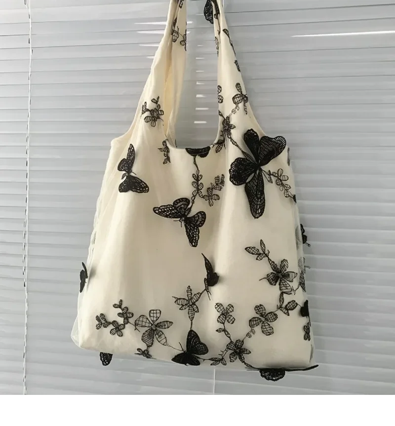 超美刺绣蝴蝶蕾丝仙女袋ins出行女包帆布包文艺大容量百搭单肩包