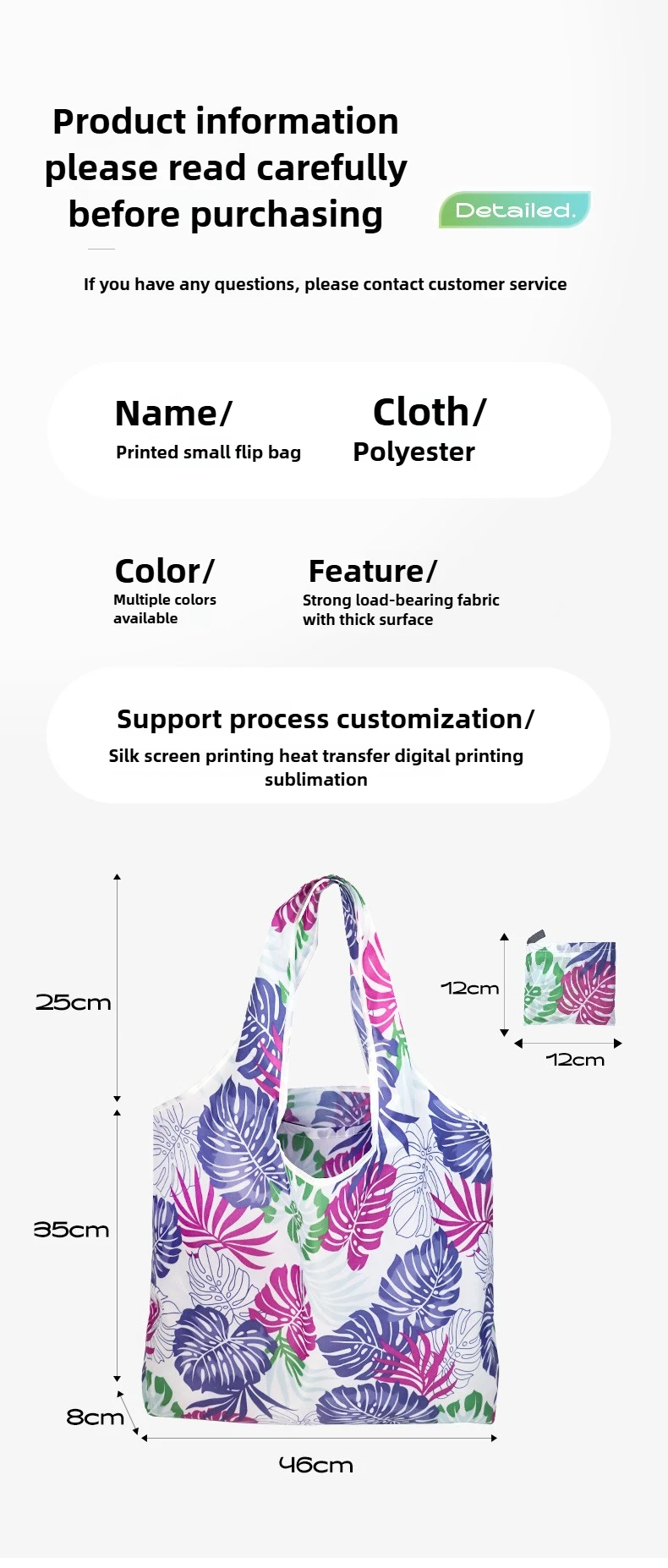Fashion shopping bag: foldable and washable, use again and again Good for grocery shopping, traveling, home storage, sturdy and durable Size:as shown Please allow1-2cm error due to manual measurement, please make sure you do not mind before you bid.